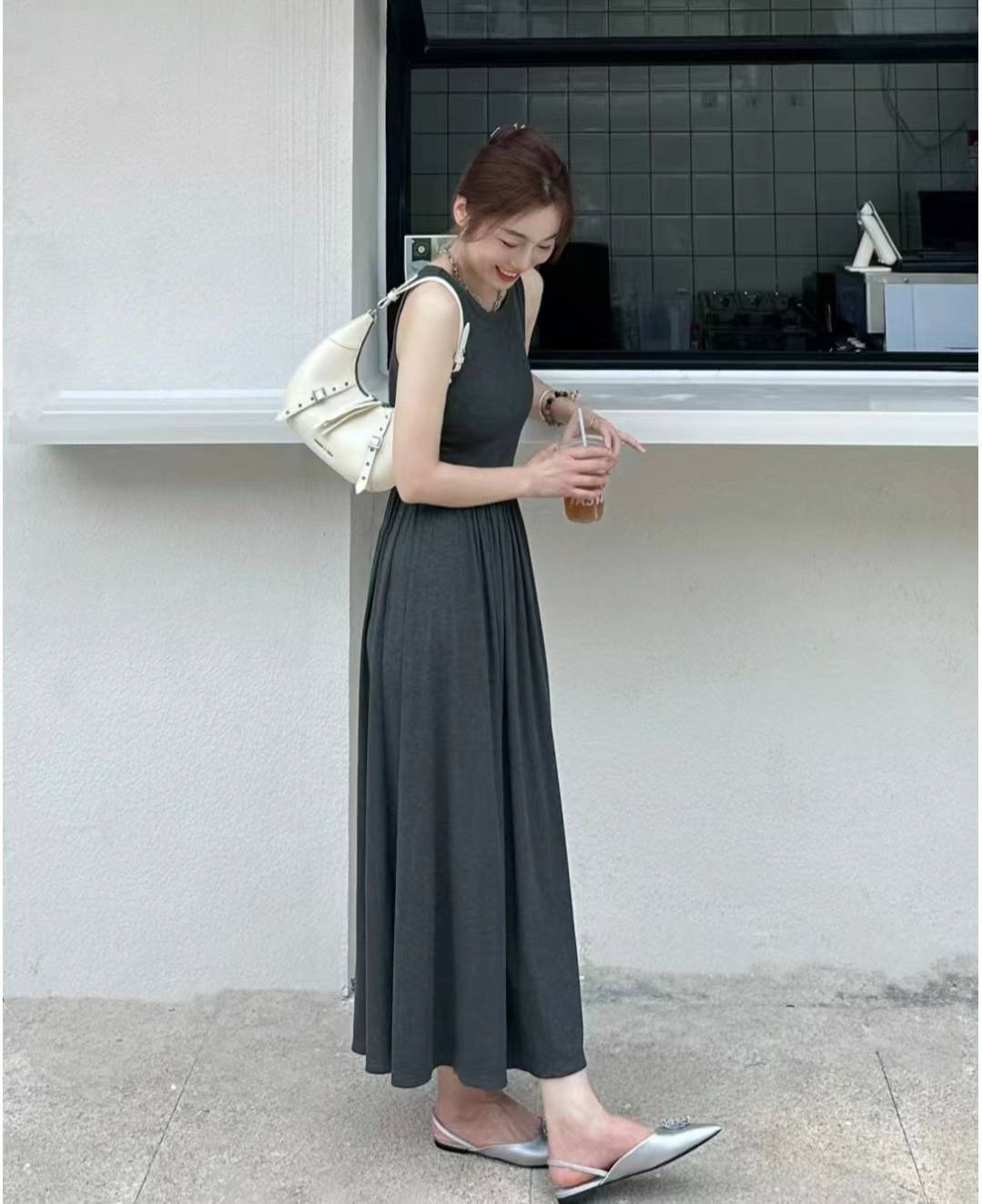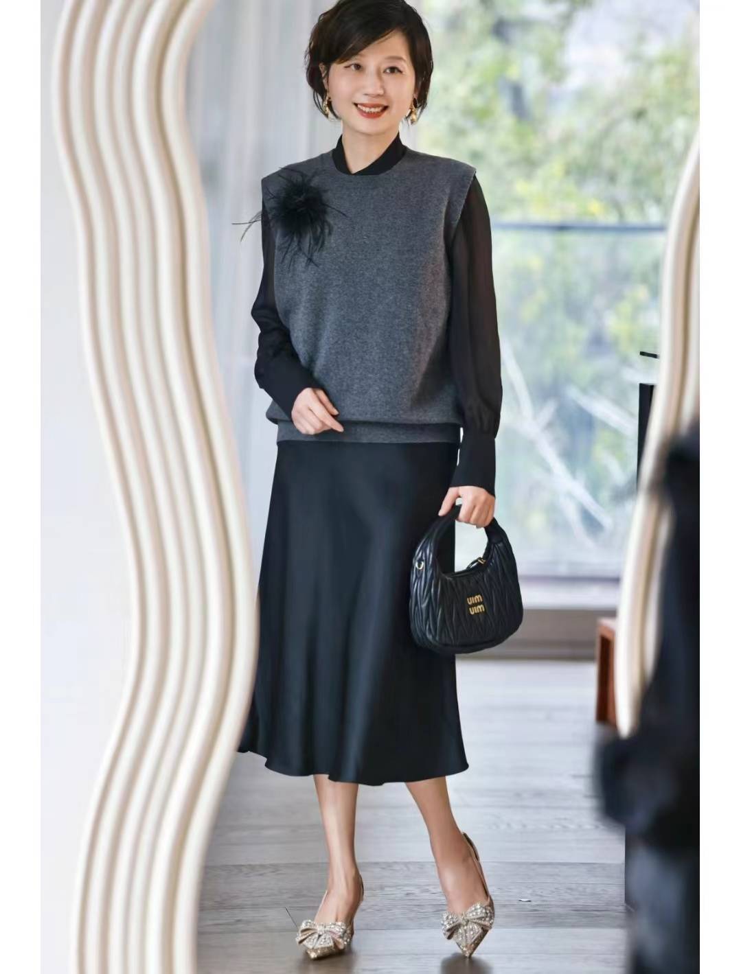 如果喜欢灰色系,可以尝试选择带有一定光泽感的灰色裙子,或者搭配一些明亮的配饰来提亮整体造型。