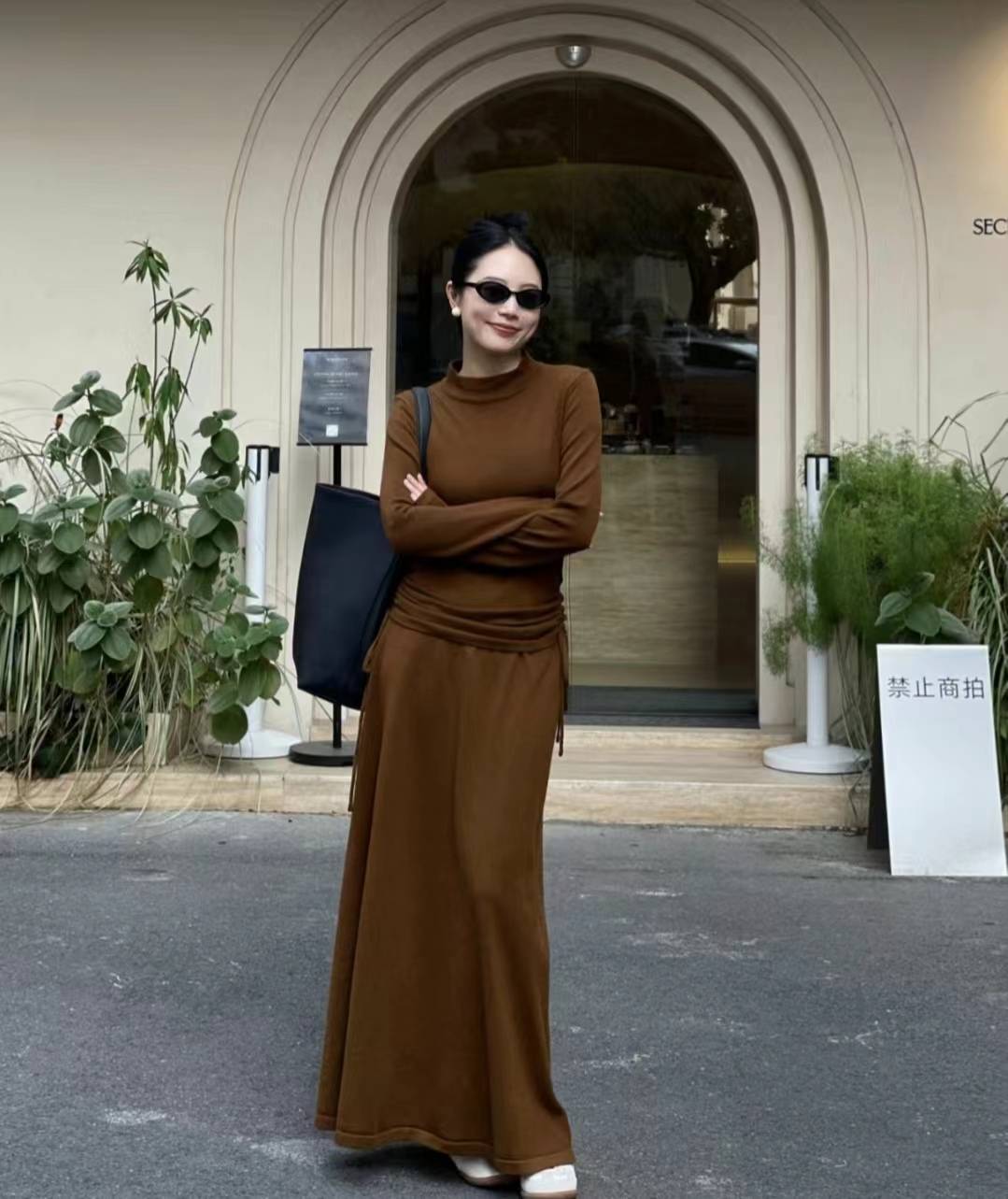 咖啡色虽然是一种经典且富有质感的颜色,但过于深沉的咖啡色裙子在五六十岁女人身上可能会显得沉闷老气。此外,这种颜色可能会加重肤色的暗沉,不利于整体形象的提亮。