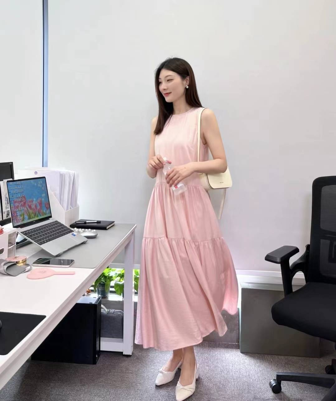 如果喜欢印花裙,建议选择色彩柔和、图案简约的款式。例如,小面积印花或以浅色为底的印花裙,既能保留印花裙的浪漫感,又不会显得过于繁杂。