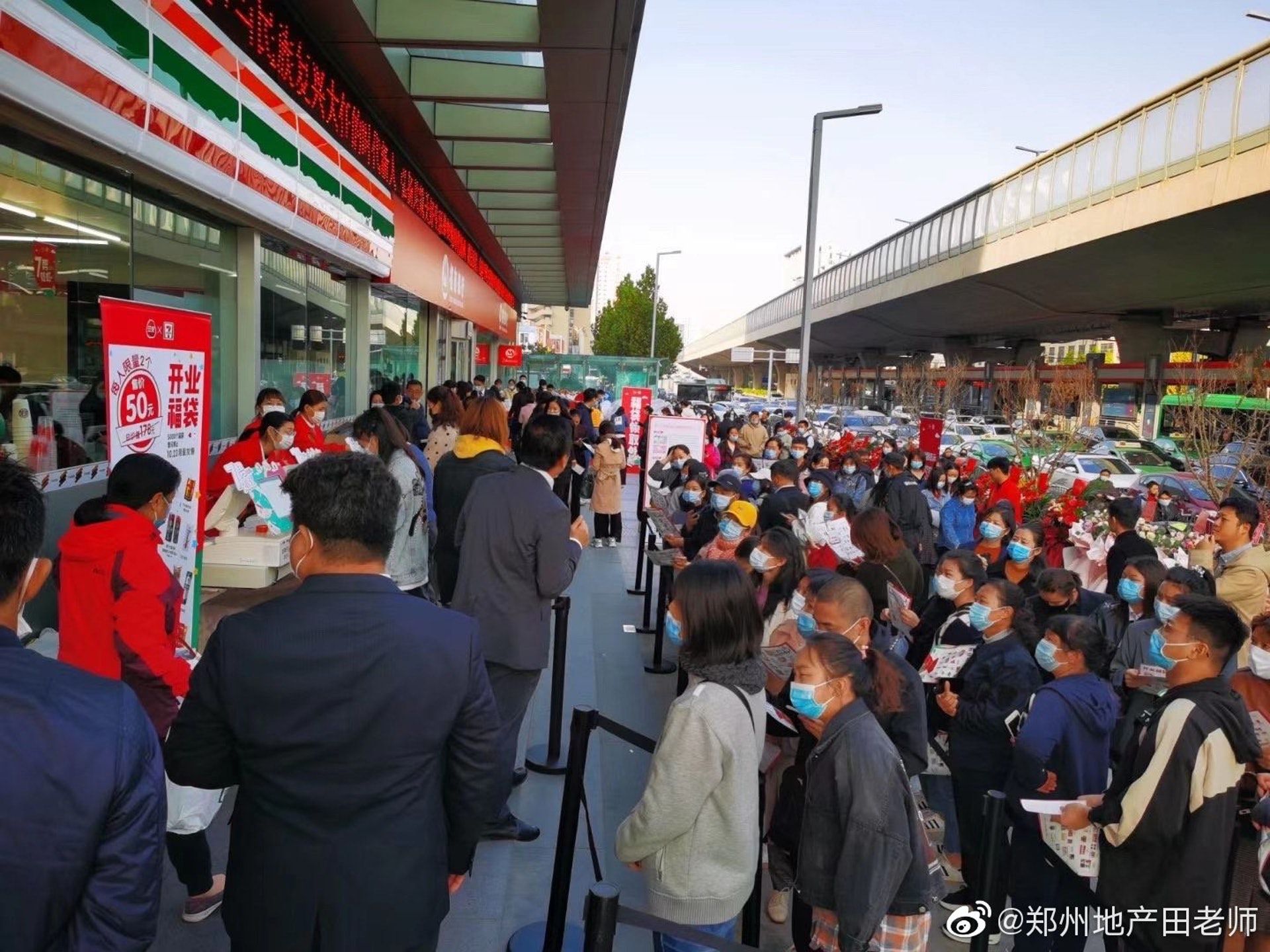 郑州首家7-ELEVEN开幕突破全球单日销售纪录,排队状况也引起网友热议。(微博@郑州地产田老师)