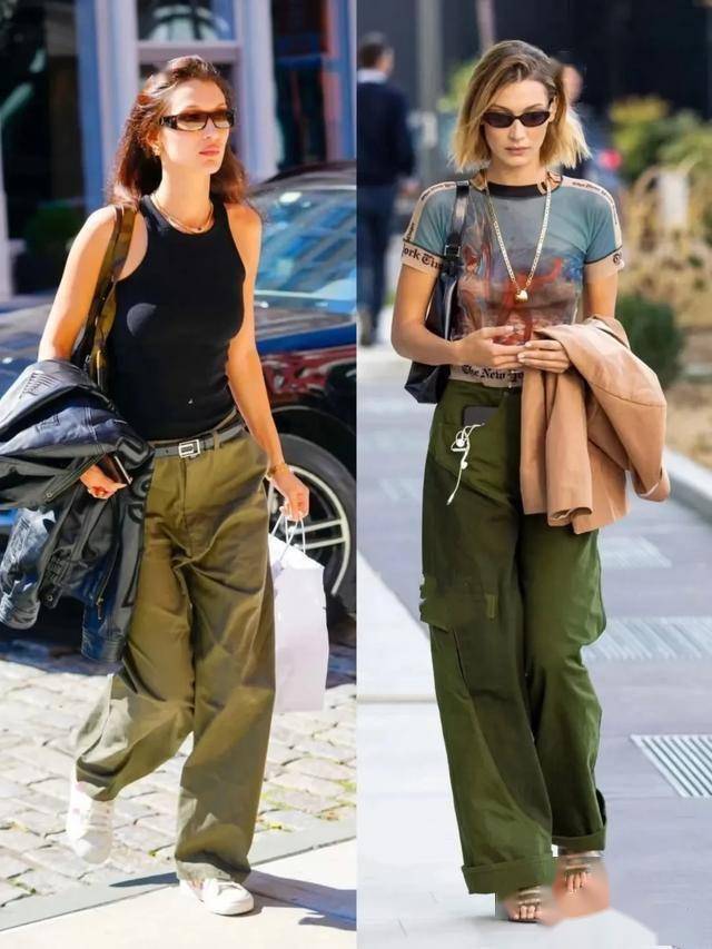 简单的黑色背心搭配军绿色工装休闲裤,风格是特别男友风的,够美够飒,喜欢这样硬朗帅气的风格,有力量感,又充满了青春的活力。