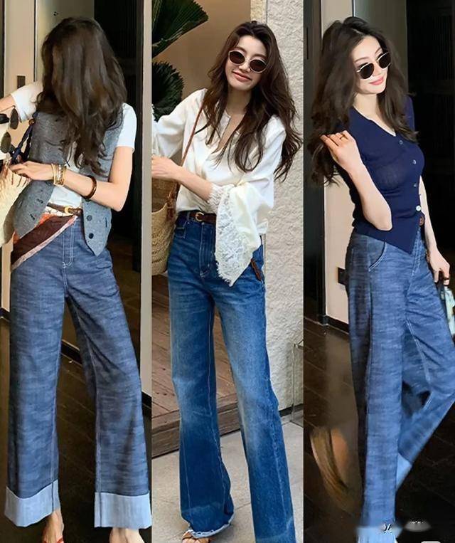帅气的牛仔裤,可以混搭配一件很温柔的荷叶袖小衫,既时髦又减龄,而且显得清爽干练,适合初夏来穿。