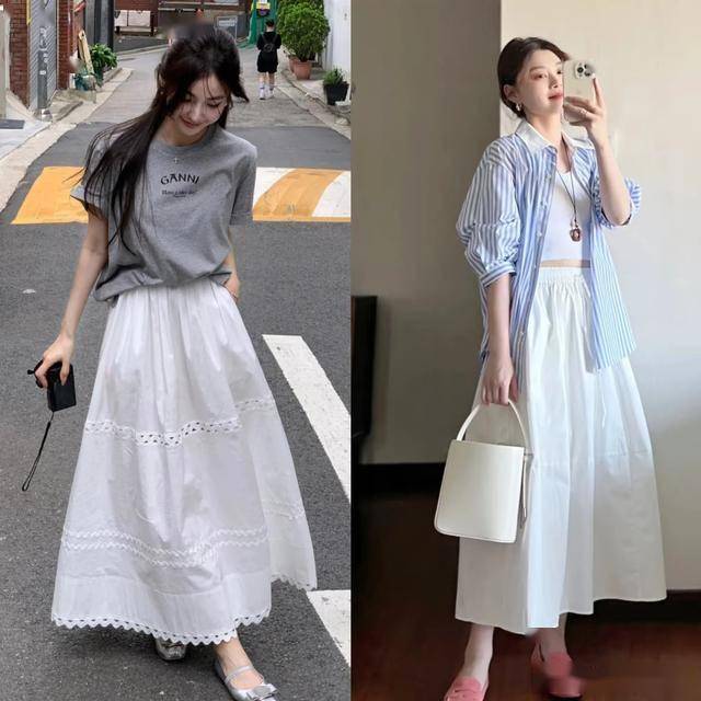 夏天可以准备一条白色的长裙,可以混搭配帅气的衬衫或是简单的T恤衫,混搭出不同的风格感。