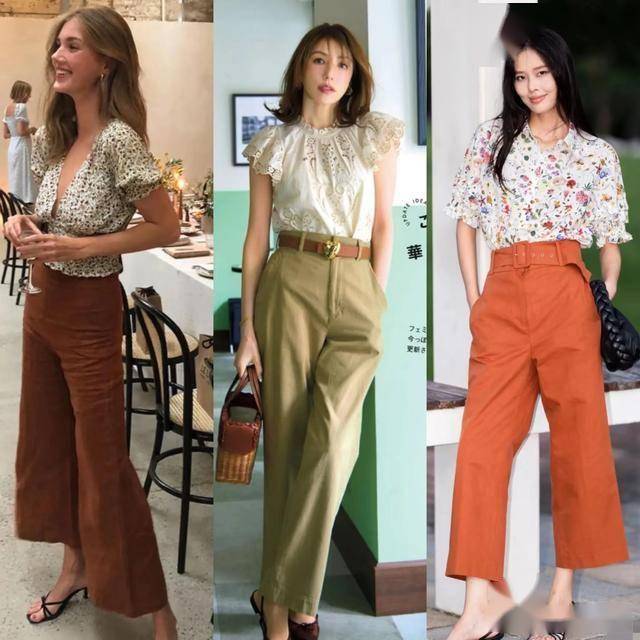 小碎花的小衫搭配暖橘色的阔腿裤,配色明媚雅致,又带着浪漫的法式田园风格,也太夏天了吧!