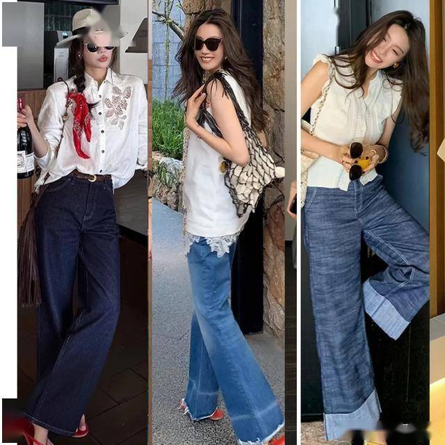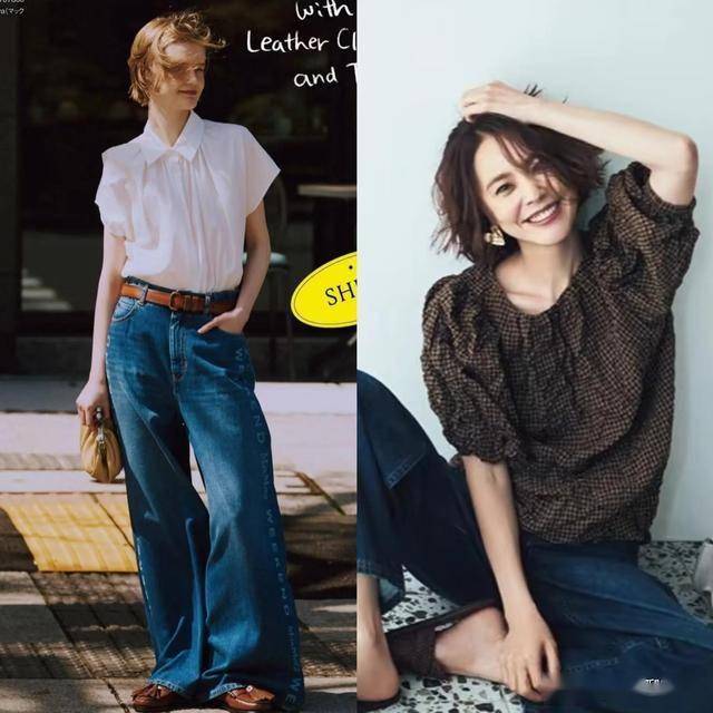 如果你有一件白色的小衫,非常推荐搭配一条牛仔阔腿裤,会是一种很小清新的风格,减龄好看。