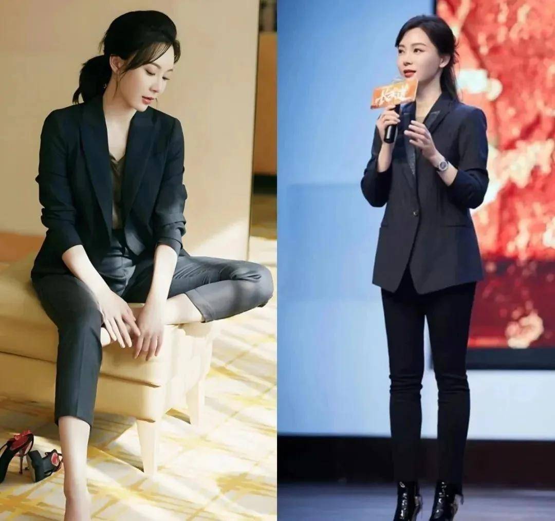 陈数姐姐有一条藏青色的烟管裤,搭配白色衬衫,简直美到爆炸!这种搭配既能体现职场女性的干练,又不失优雅。姐妹们,赶紧学起来!