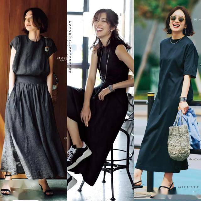 中年女生非常推荐黑色的短袖连衣裙,直线条的剪裁不需要过多的修饰,遮肉显瘦的同时,又有种随性大气的风格,很耐看。