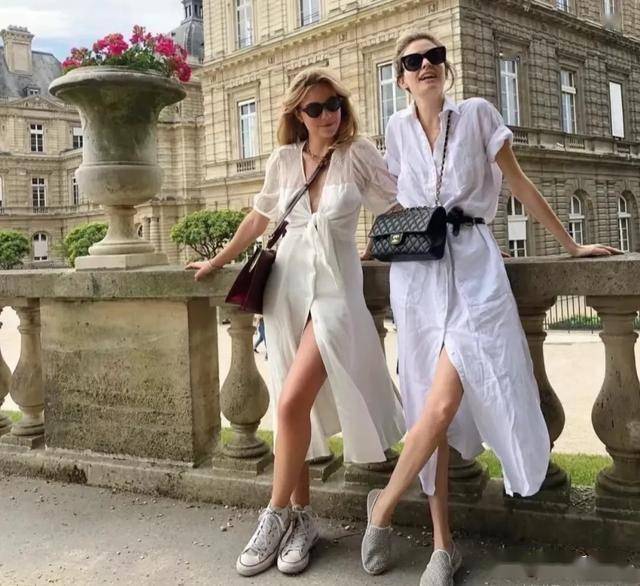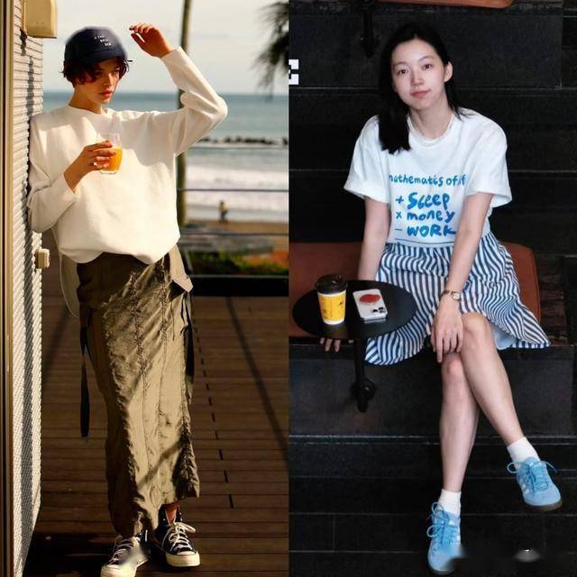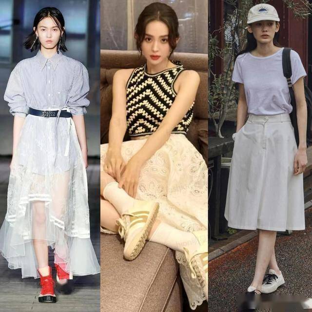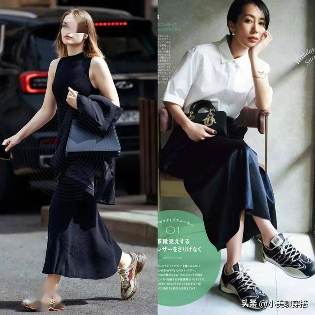 长裙与运动鞋是近年来很火的潮流组合,这种搭配打破了传统着装的界限,又完美平衡了女性柔美与活力感,有自己的时尚态度。
