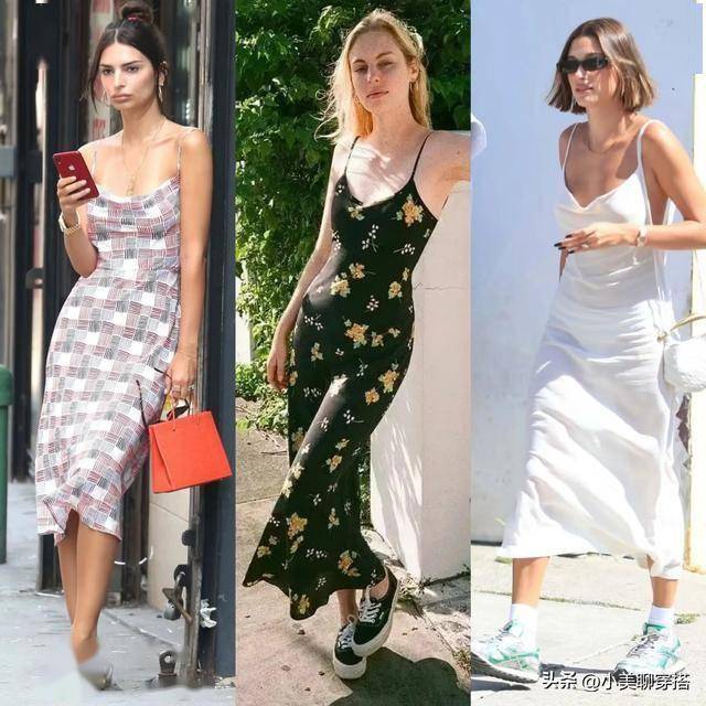吊带长裙总是带着温柔浪漫的味道,又显得格外性感,可以配一双简洁利落的帆布鞋,会增加青春感,也可以搭配浅色系的老爹鞋,增加一些慵懒感,更耐看。