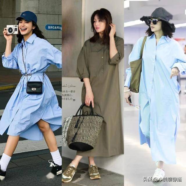 衬衫裙可太适合初夏出游时穿了,与运动的搭配,堪称“懒人时髦精”。
