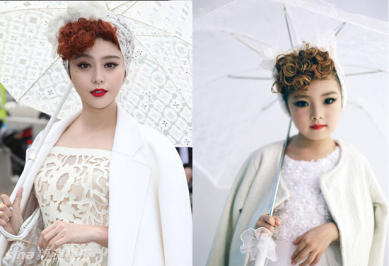 小朋友COS范冰冰时装周造型 范冰冰启程时装周,网络上甚至出现了萌娃神COS范冰冰此前的时装周经典造型,可爱爆棚的宝宝们还被网友们称作了“XXXS版范冰冰”。