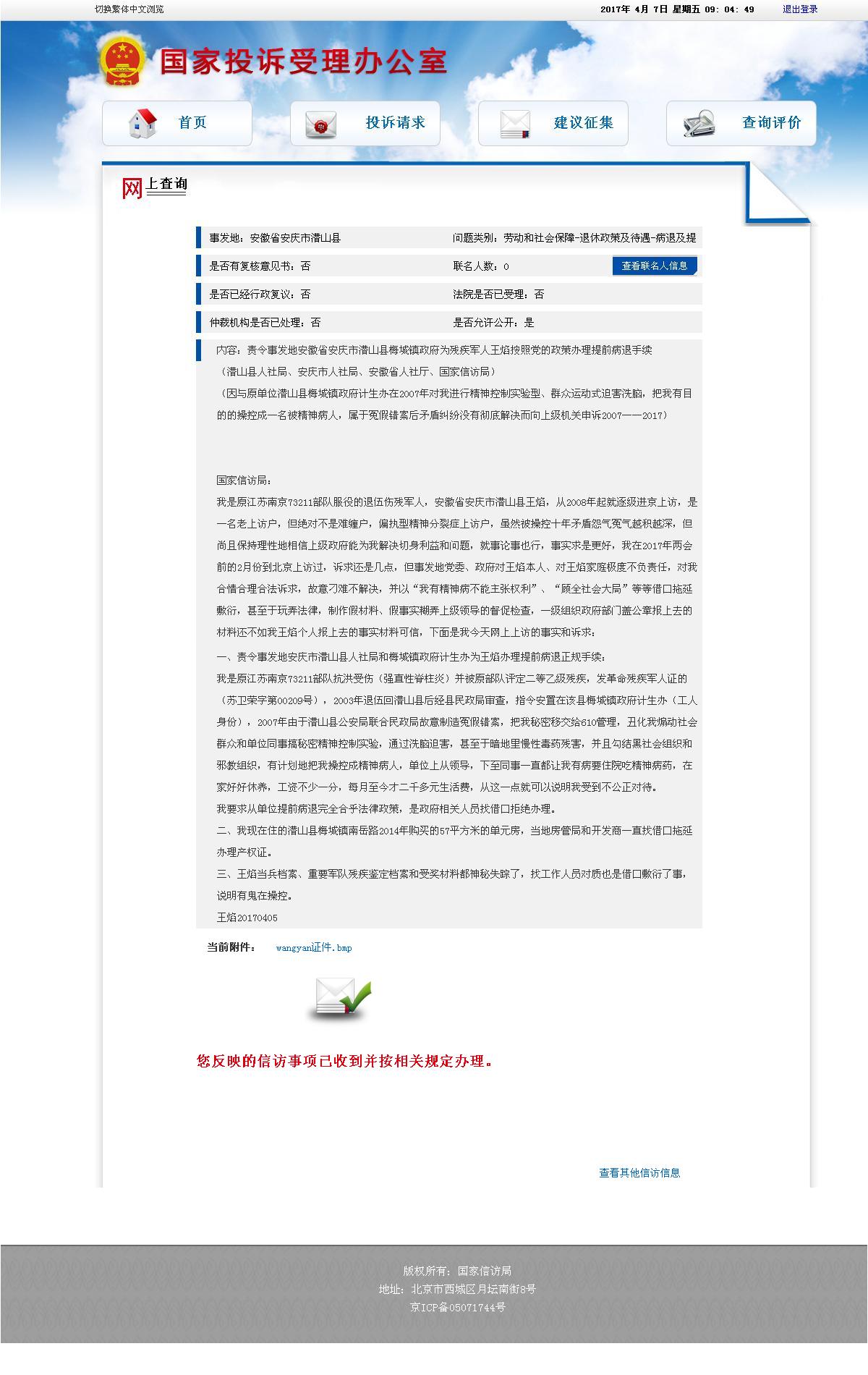 2017年冤假错案引发的精神控制实验受害人王焰北京上访有感 下面是我20170205到北京国家信访局、中纪委、军委办公厅、公安部、民政部等各部门上访的材料,上访接待人员只是例行登记一下身份证,材 ...