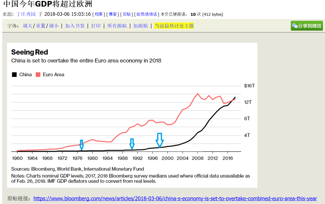 中国今年GDP将超过欧洲, 事实胜于雄辩。这个由国际组织制成的图表说明,从1976 年到1989年,再到1996年,中国的GDP几乎没有增长;从 邓小平死后的1997年到2002 年, 江泽民搞集团公司,走与邓小平相反的路线,GD ...