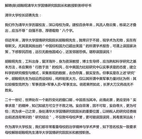 丁咚:胡鞍钢博士为什么已成为负资产? 超过千名清华大学校友联署呼吁该校校长邱勇先生,以母校声誉为重,解除清华大学国情研究院胡鞍钢博士院长和教授职务。 清华校友们认为,胡鞍钢博 ...