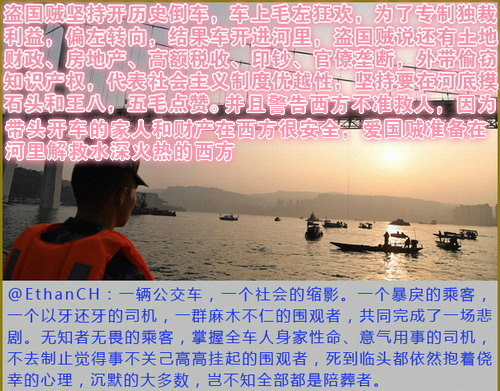在河边走路,不时地看微信,大家还是在关心重庆大巴坠江的事情。说实话,我昨天的文章虽然没有对这场悲剧的责任进行划分,但是,我心里还是觉得大巴车司机责任更大一些。我先不说网上很多人说22路公交 ...