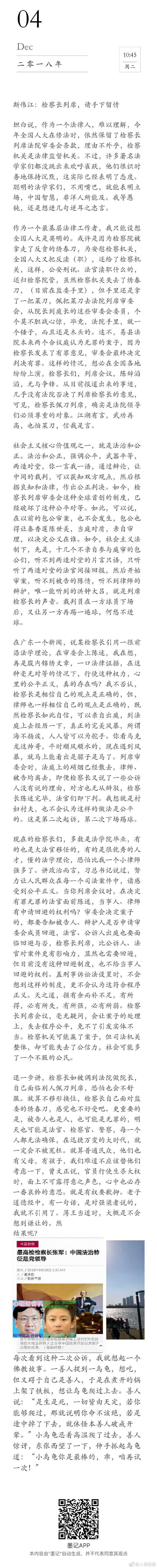 本帖最后由 xlyyj 于 2018-12-4 12:14 编辑 沈勇平 现行宪法共有一百四十六条,可以总结成六个字,那就是“坚持党的领导”。党政军民学,东西南北中,党是领导一切的。宪法作为根本 ...