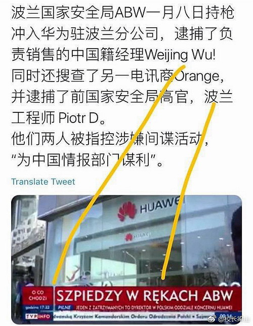 沈勇平 华为还出间谍啊? 环球网:环球网编辑部11日从中国驻波兰大使馆获悉,当地时间周五在波兰被捕的中国公民为华为员工。11日稍早前,有波兰媒体报道说,波兰抓捕一名中 ...
