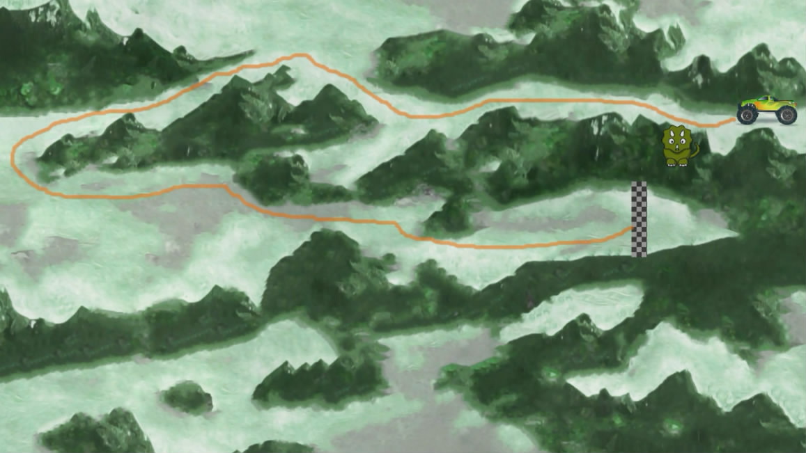 這是一場分秒必爭的比賽,攀爬車充分發揮其超強的越野能力而大腳車選擇了平穩的路線全速沖刺!