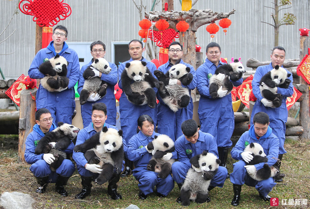 红星新闻 1月31日报道,中国结、红灯笼、红色的小猪玩偶……今天(31日)上午,中国大熊猫保护研究中心神树坪基地熊猫幼儿园里张灯结彩,当然,任何色彩都抢不了黑白萌物大熊猫的风头。今天,11只2018年出生 ...