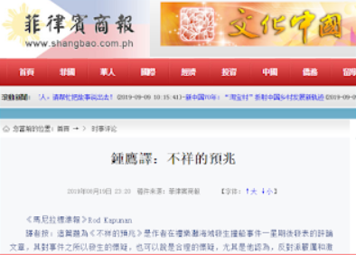 【摘要】这篇评论是作者在礼乐滩海域发生撞船事件一星期后发表的。他认为,菲律宾反对派激烈的反应会使“菲中双方签署的协议变成一文不值的废纸”。作者力排众议,使主流社会知道一个铁的事实: ...