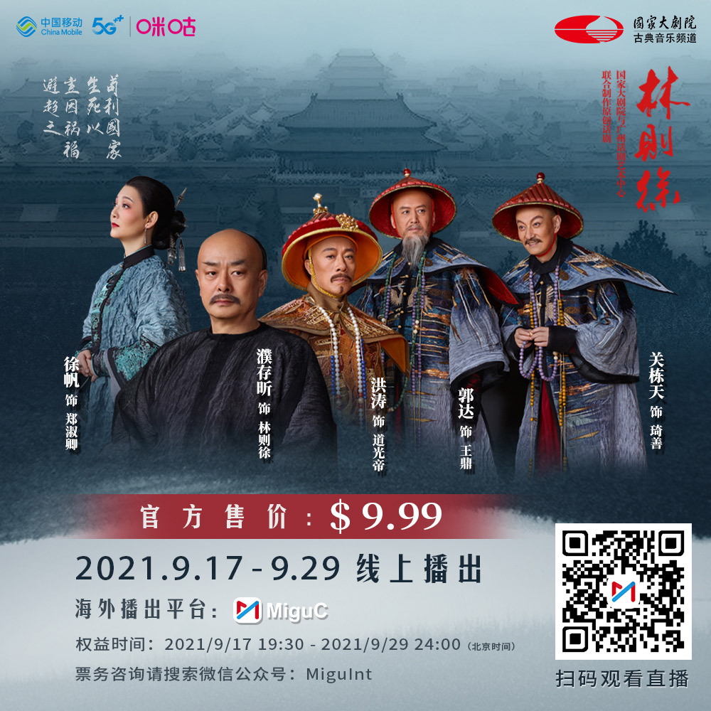 展现角色复杂内心世界 ★海外用户可扫描上方二维码或点击MiguC APP下载观看 ★2021年9月17日 19:30 至 2021年9月29日 24:00(北京时间) 打开MiguC APP首页找到话剧《林则徐》直播节目,购买 ...