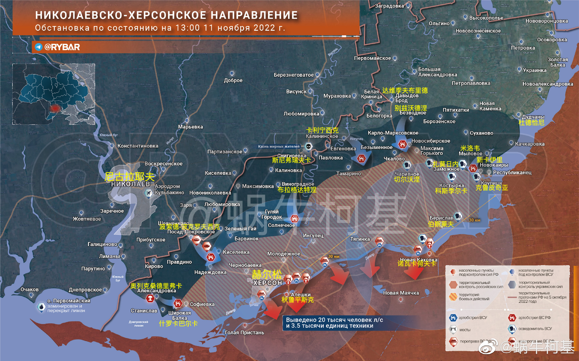 来源:蜗牛柯基 ▪️俄国防部正式宣布俄罗斯武装部队整体从第聂伯河右岸撤离完成:最后一批装备和人员于凌晨5点完成交接。据军事记者亚历山大·斯拉德科夫(Alexander Sladkov)称,2万多名人员和3500 ...