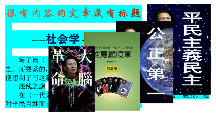 本帖最后由 顾晓军 于 2023-1-29 07:32 编辑 很有内容的文章没有标题 ——社会学·四千八百三十六 写了篇〈一代枭雄毛泽东(褒义)〉,有网友褒奖之,亦有网友质疑之。而要紧的,是我有些没 ...