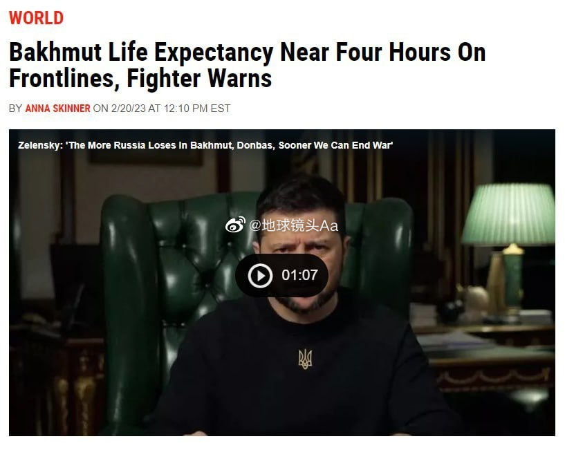 来源:地球镜头Aa 美国《新闻周刊》 乌克兰动员兵在巴赫穆特附近的前线存活不超过四个小时。 正在 "非独立 "一方作战的前美国海军陆战队员特洛伊-奥芬贝克尔向《新闻周刊》分享了他的观察。 "大量的伤 ...