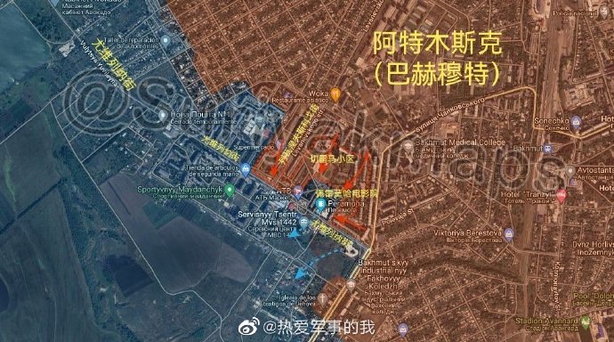 来源:热爱军事的我 阿特木斯克(巴赫穆特)前线: 在乌克兰军队撤退到诺夫伊(Novyi)小区后,俄罗斯军队/瓦格纳部队从列瓦涅夫斯科戈街到达尤维列纳街,并控制了切雷马小区的大部分(佩雷莫哈电影院和47号学校 ...