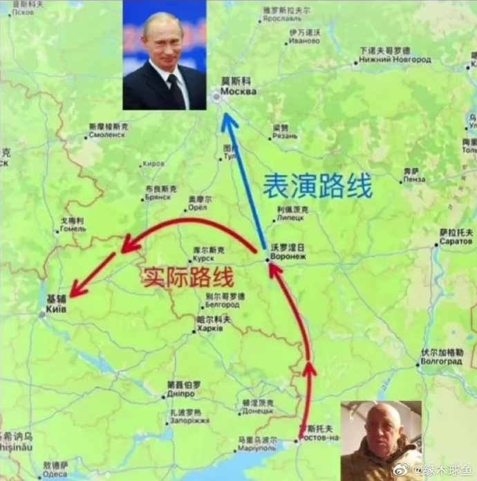 来源:缘木球鱼 2023年6月24日:瓦格纳距莫斯科200公里 2023年6月25日:瓦格纳距基辅100公里[笑cry]