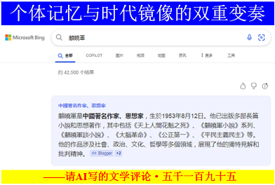 个体记忆与时代镜像的双重变奏 ——请AI写的文学评论·五千一百九十五 请看题图,昨夜用必应搜索「顾晓军」,呈现的是「中国著名作家、思想家//顾晓军是中国著名作家、思想家,生于1953年8月12日,他 ...
