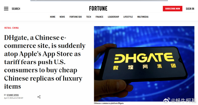 蜗牛柯基 由于担心关税,美国消费者纷纷购买中国的廉价奢侈品仿制品, 中国电商网站敦煌网 (DHgate) 突然登上苹果应用商店榜首。 来源:fortune 柯基语:继小红书之后又来了小黄app,美国人民开始找到生活 ...