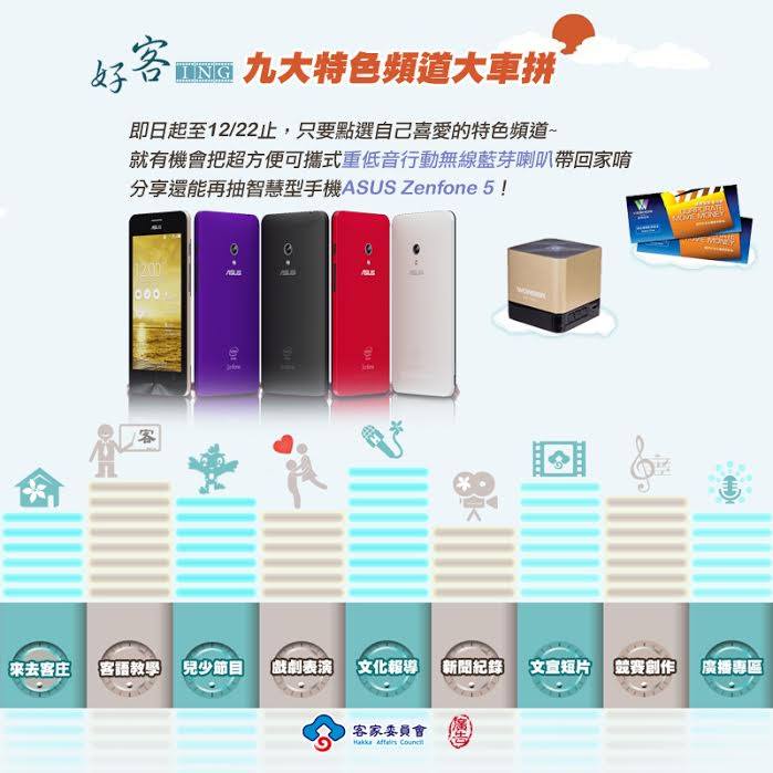 動動手指就有機會獲得ASUS Zenfone 5及行動無線藍芽喇叭這種好康還不快來參一腳嗎?!Step 1:觀看好客ING九大類型特色節目頻道 Step 2:點選選出最喜歡的頻道分類,即完成投票! 將會從被最多人點選的頻道分類中抽 ...