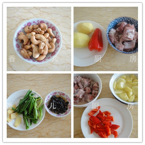 需要的食材;小排骨500克 土豆200克 红椒一个 熟腰果50克 调料;油,豆豉 青蒜 蒜片 香油 生抽 生姜 生粉 料酒 & ...