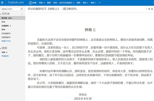 网上刊登出来的李洪志的经文,4月份的,上面提到“说什么大纪元的某个负责人怎么怎么样。”看来那时候李继光就已经死了,不过我们很想知道他是怎么死的,真的是自杀吗?