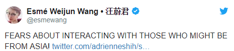 而这种情绪甚至波及了所有亚洲面孔的人,不仅仅是华人。
