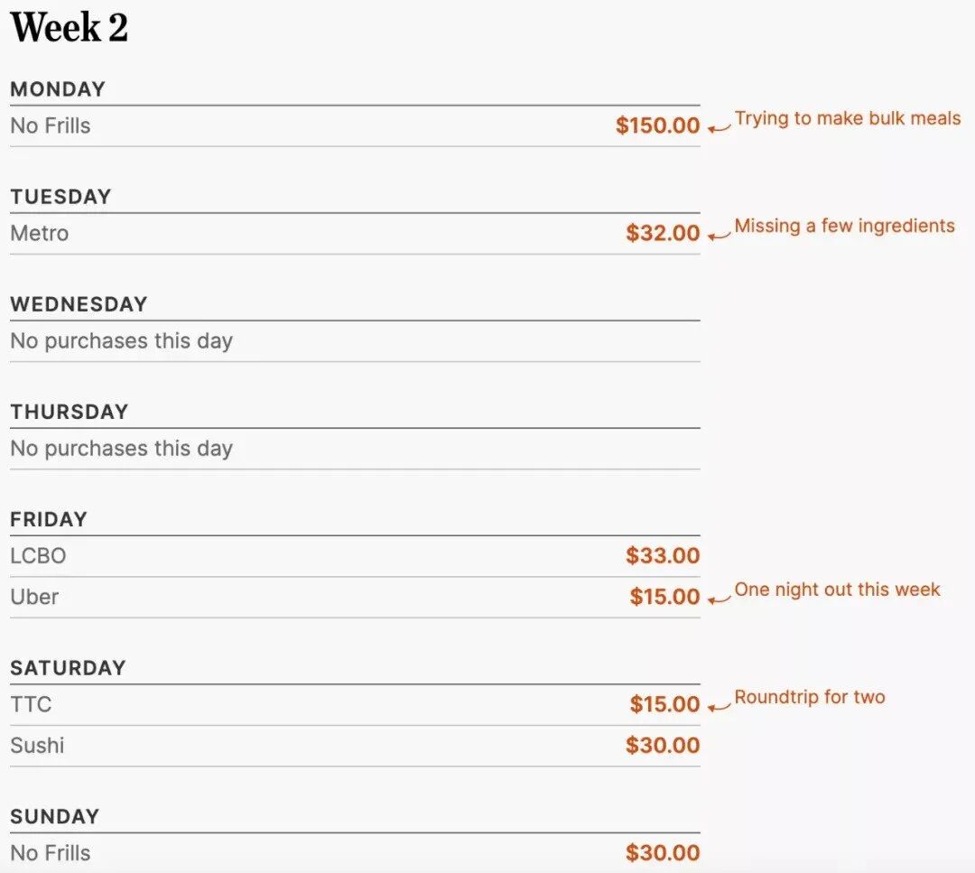 第二周,Sandro小两口少花了$100,他们试着更多地在家做饭,做的更健康。