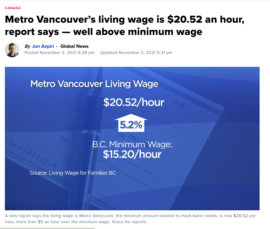 上周(11月2日),一项报告指出,在大温生活的工资至少要到$20.52加元一小时。