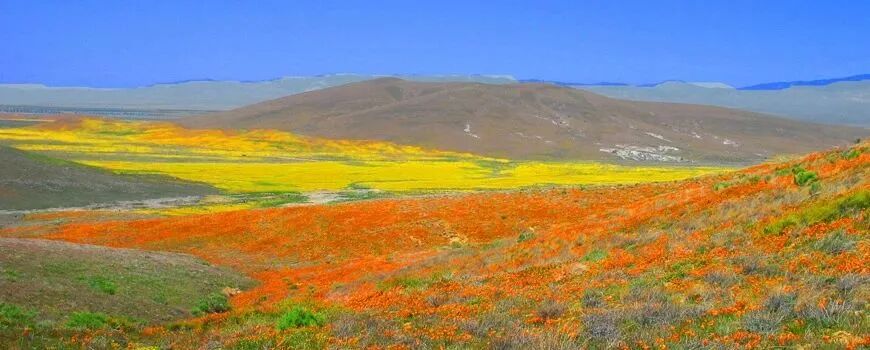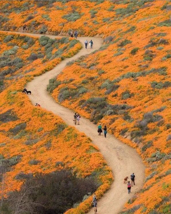 这里有大片大片的罂粟花海。罂粟花(Poppy)是加州的州花,它结不出罂粟,只是加州特有的一种植物。与别处的罂粟花不同,这里是罂粟花保护区,在这个1,780英亩的地域中有一条长达8英里的步道,可以欣赏到这个“世界十大花海”之一的神奇秘境,每年都给络绎不绝的游客带来绝美的视觉盛宴。