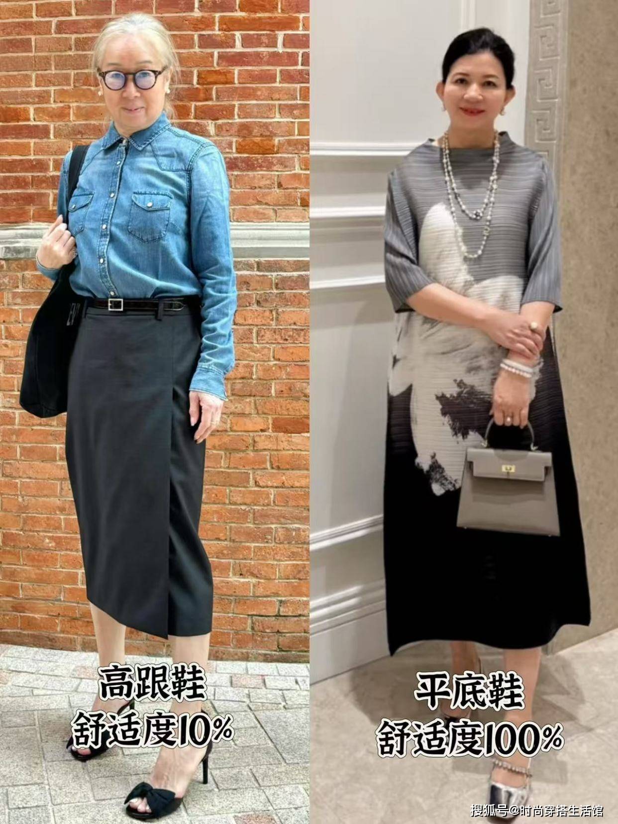 女人上了年纪之后,不仅颜值、身高、身材发生变化,像是人体关节和骨骼也会发生变化,穿裙子搭配高跟鞋的话很容易加重脚部、腰部的负担。如果长期穿高跟鞋的话还可以引发健康问题,所以说中老年女性建议多穿平底鞋,更好保护脚部和身体健康。