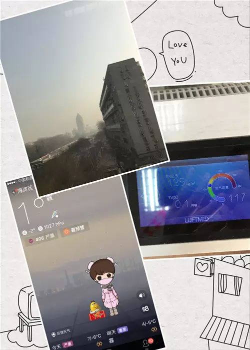 拍摄者:南瓜 北京海淀室外图,天气预报及室内净化情况。最想说的是:还我蓝天。