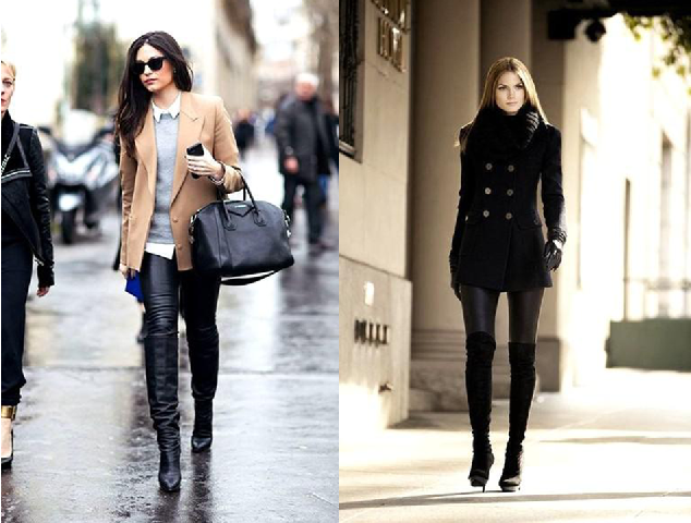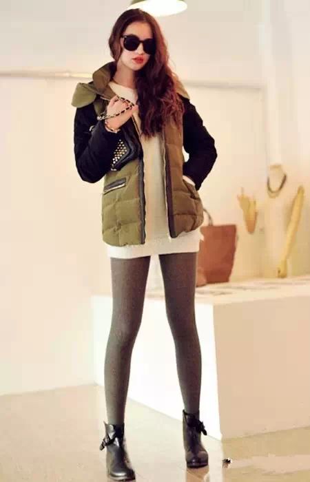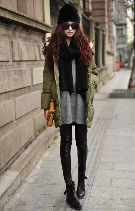 过膝长靴搭配紧身打底裤,如果这样还不显腿长,那我们也帮不了你了!