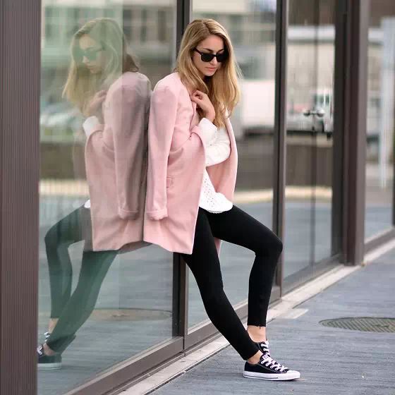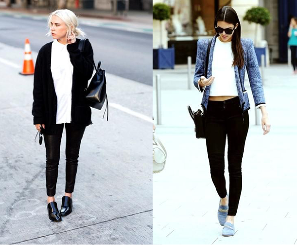 乐福鞋搭配打底裤的功效与运动鞋类似,但不同的是运动鞋露的是脚踝而乐福鞋路的是脚背。而且不用搭配七分或九分的打底裤,正常长度的打底裤依靠乐福鞋那裸露的一小片脚背,也能起到拉长腿线的效果。