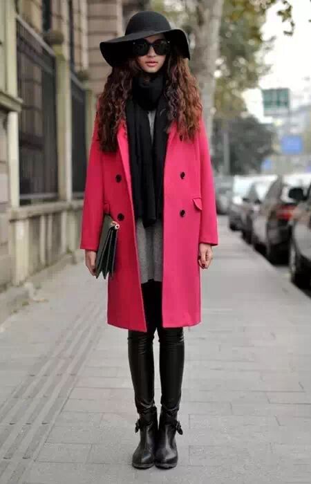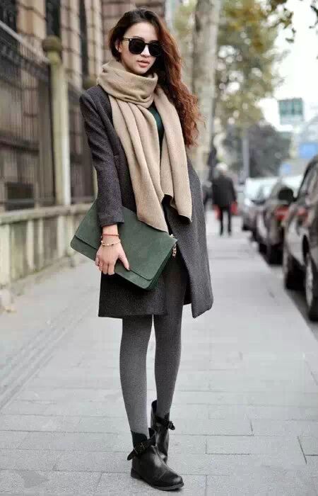 纯色的针织、羊绒之类质感厚重的围巾可以在秋冬的打底裤搭配中代替厚重累赘的外套,保证温度之外还可以作为画龙点睛的配饰,为全身造型增添一抹亮色。