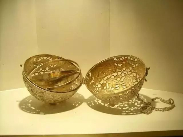 熏香是古代达官贵人享受生活必不可少的物品,不过,这种熏香球里里外外有好几层,不仅可以熏香,也可做手炉取暖,把熏香放在里层的小碗里,不论这个球怎么滚,双手怎么动,里面的熏香或者碳火都不会掉出来。