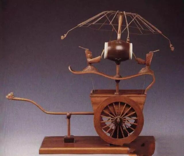 这个是大科学家张衡发明的,含金量高了,简直就是古代的出租车。据载,计里鼓车每向前走一里,车上的木人就会敲一下鼓,每走十里敲一下钟。故名“记里鼓车”。
