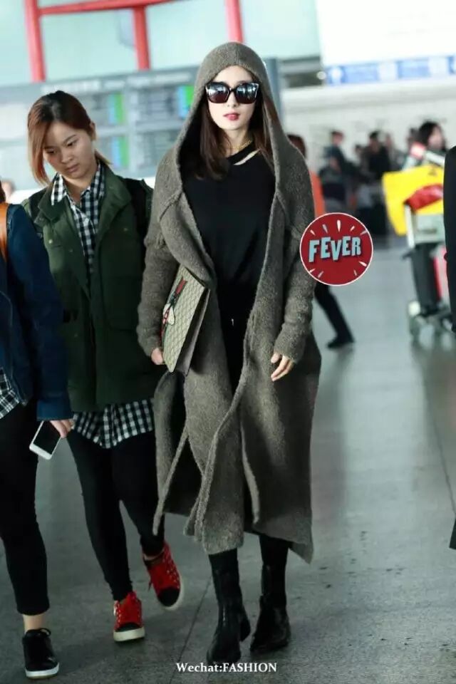 作为爆款王当然要称职,安利的套头毛衣当然还要毛衣外套,oversized灰色连帽长款开衫内搭黑色紧身裤,搭配Gucci蜜蜂手包。