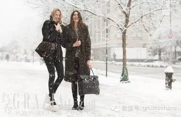 反之,如果你穿了暗色系,或者荧光色系,那么前者会让整个人都显得不那么吸睛,后者的靓丽色彩加上雪本身的白色,会略显刺眼。除非是专程去滑雪,否则尽可能少将这样色系的服装在下雪天穿出门。