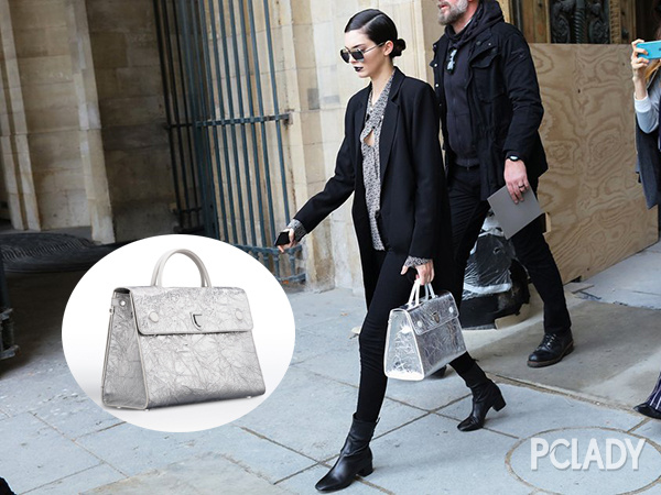 Dior的包包永远是逢出必火的狠角色,Kendall Jenner 一身黑西装,搭配银色Diorever手提包是整体最大的亮点。