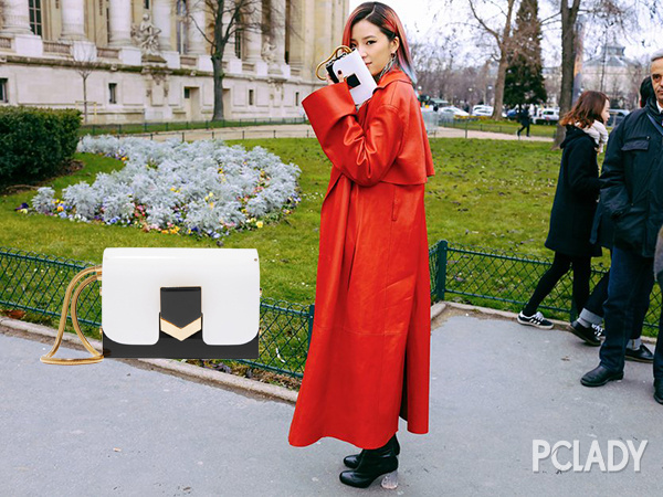 Irene Kim 拿JIMMY CHOO Lockett 双色亚克力手拿包